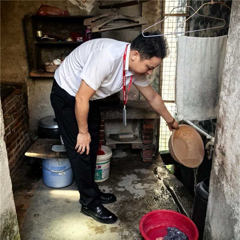 8 月 13 至 14 日,活动正式开展。首日,烈日炎炎,行动小组成员骑着电动车,载着物资穿梭在狭窄街巷。尽管高温让他们汗流浃背,工装湿透,但每到一户长者家中,都精神饱满地送上 “柏瑞康式” 的关怀。次日,暴雨突然来袭,道路积水严重,可行动小组没有丝毫退缩,顶风冒雨前往长者家中。到达时,大家浑身湿透,却迅速整理好自己,以最佳状态将组织的温暖传递给长者。党员冲锋在前,管理层协调保障,员工代表贴心服务,在风雨中共同谱写了一曲温暖的赞歌。