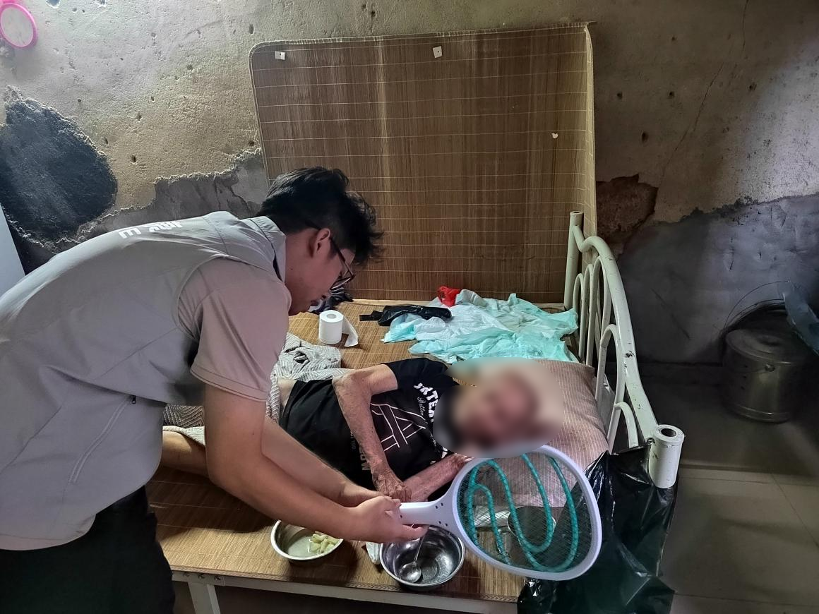 当日,柏瑞康健康服务团队携带着精心准备的防蚊物资和宣传资料,开启了入户慰问之旅。一踏入长者的家门,服务人员便立刻分工协作。一部分人负责仔细检查房屋周边环境,清除积水等容易成为蚊虫孳生地的危险因素。大家手持工具,认真清理每一个角落,不放过任何一处可能藏有积水的地方。