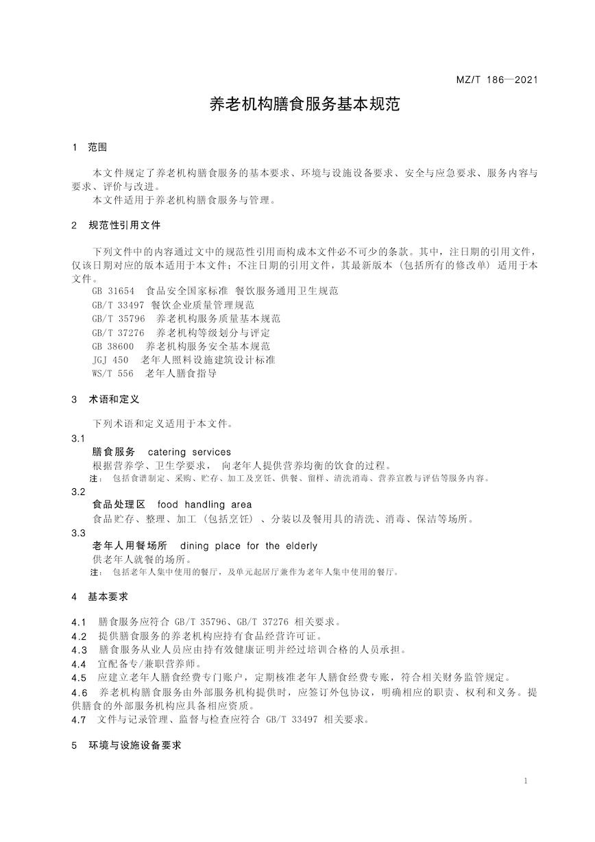 养老机构膳食服务基本规范
