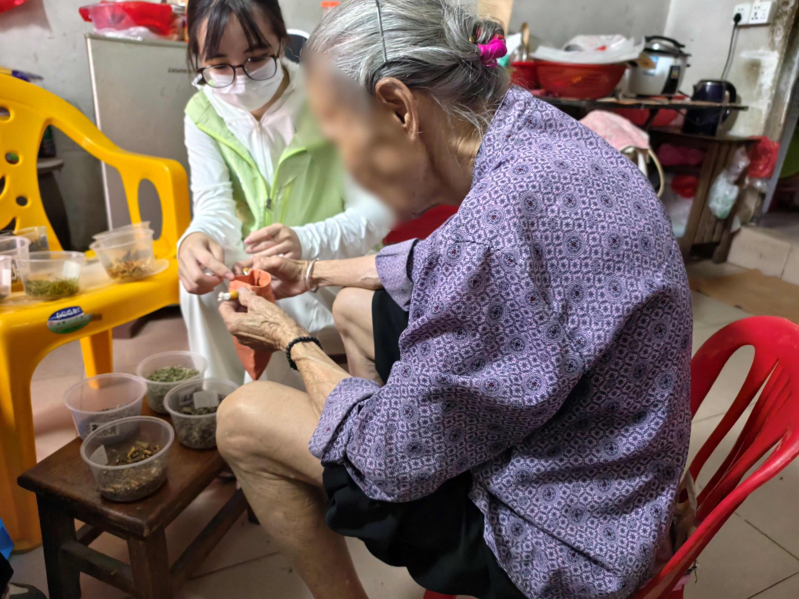 活动当天,服务人员早早来到社区,准备好制作防蚊包所需的各类材料,如艾叶、薄荷、白芷等具有天然驱蚊功效的中药材,以及精致的布袋。一切准备就绪后,便前往老人家中。每到一户,服务人员都热情地和老人打招呼,关切询问他们的生活情况和身体状况,随后便开启手工制作环节。服务人员坐在老人身旁,耐心地为老人讲解防蚊包的制作方法,并手把手指导老人如何将中药材装入布袋。老人们学得十分认真,眼神中透露出对活动的好奇与期待。在大家的共同努力下,一个个饱含着爱与关怀的防蚊包制作完成,散发出淡淡的草药香气,仿佛是为老人们筑起的一道无形的防蚊屏障。