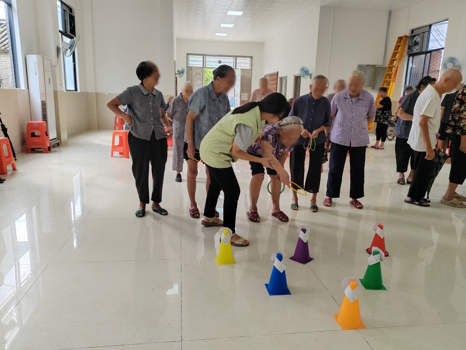 “圈住团圆”——圆环里的节日惊喜抛圈环节将气氛推向高潮。长者们瞄准摆放整齐的月饼、灯笼等图案奖品,圆环在空中划出弧线,每一次成功套中都伴随喝彩,小小圆环承载着对节日的期待与喜悦。