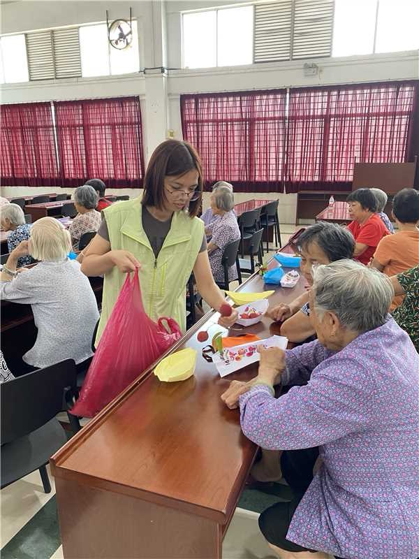 活动最后,服务团队为每位长者派发新鲜荔枝、黄皮和龙眼等时令水果。并让长者将水果摆放在用彩纸折出的“香蕉船”上,然后拍照留念,小小的纸船瞬间成了承载欢乐的“果盘”。